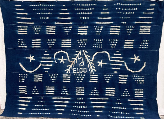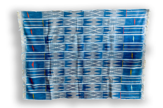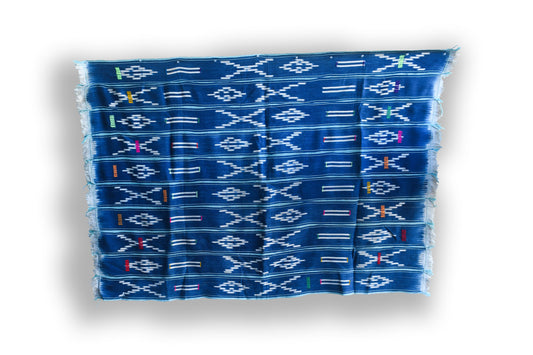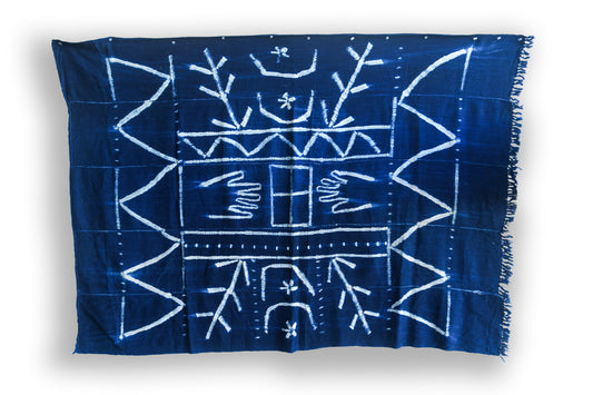 Crafted Tie Dyed African Baule Indigo Ikat Cloth, Vintage Cotton Fabric, Home Decor