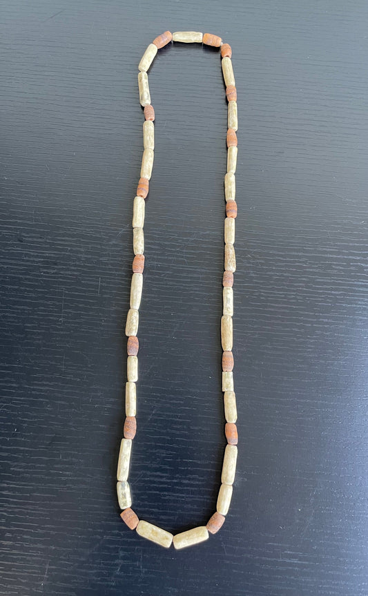 African Tribal Beads Necklace, Vintage Hand Carved Bone Beads Necklace