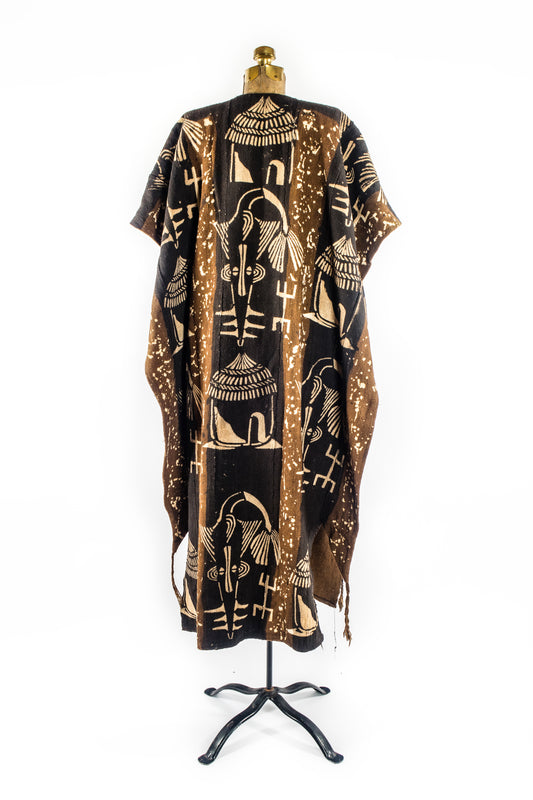 Bogolan Poncho, Dyed Cotton Fabric, African Mudcloth Textile