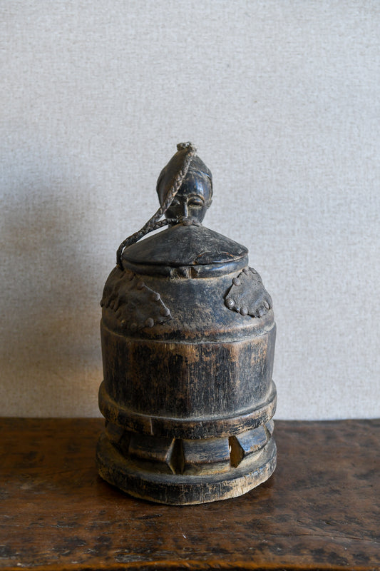 Baule Divination Bowl Figure, Carved Wooden, African Sculpture, Lidded Vessel, Art Object