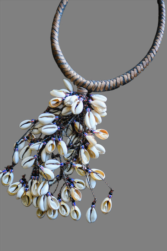 African Tribal Cowrie Shell Necklace Pendant, Handcrafted Jewelry