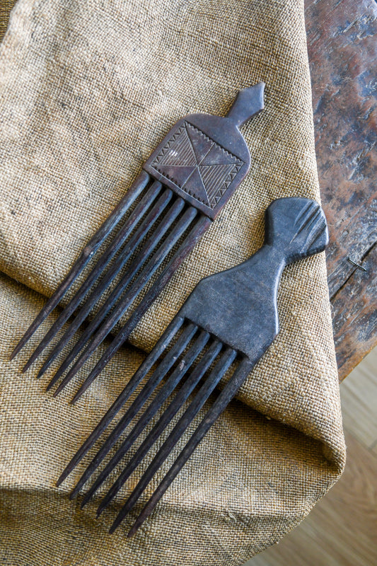 Pair of Ashanti Combs, Carved Wood, African, Tribal Art Object