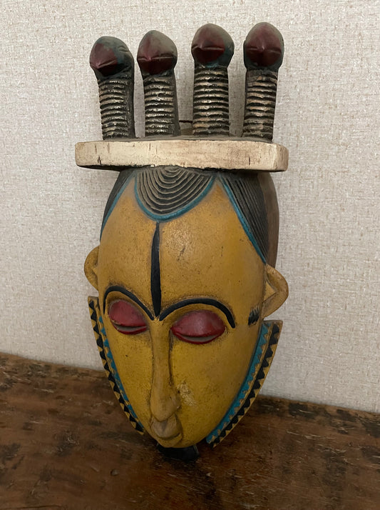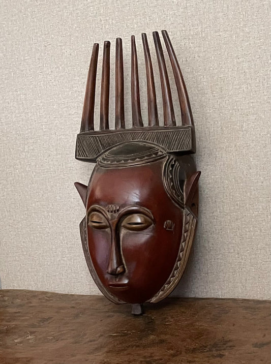 Hand Carved Wooden, Baule Comb Mask, African Vintage, Wall Decor Art