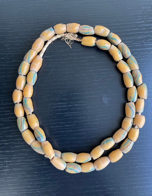 Vintage, African Krobo Trade Beads, Handmade Jewelry, Blue Glass, West Africa