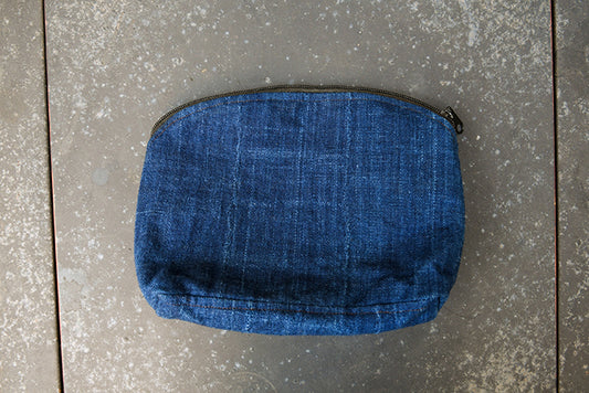 Dyed Mudcloth Fabric, African Indigo Textile, Accessory Makeup Bag