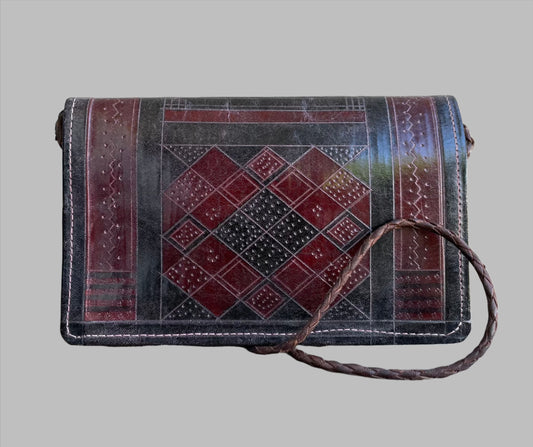 Tuareg Leather Handbag, Fulani Clutch Bag, Handmade Vintage Style