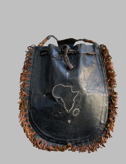 Tuareg Crafted Leather Handbag, Africa Map, Shoulder Bag, Vintage Style