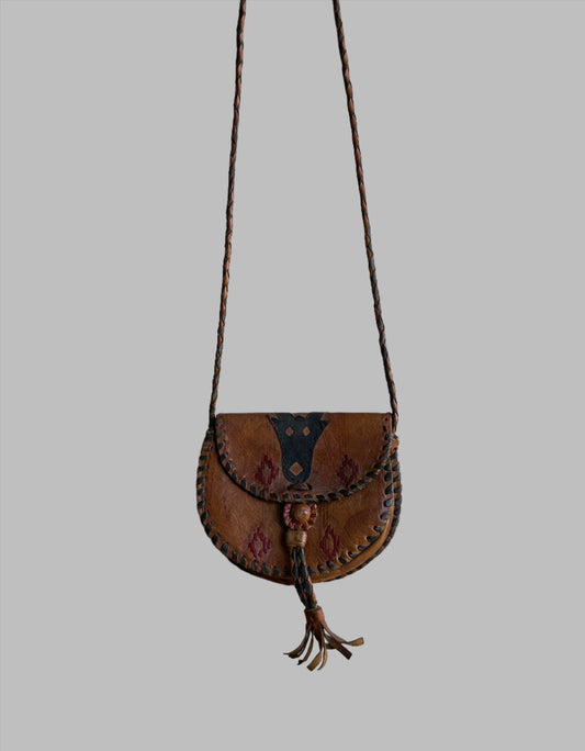 Tuareg Leather Shoulder Bag, Handcrafted African, Vintage Design