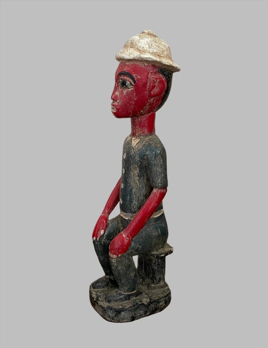 Decorative Wooden Statue, Hand Painted, Vintage African, Seated Man