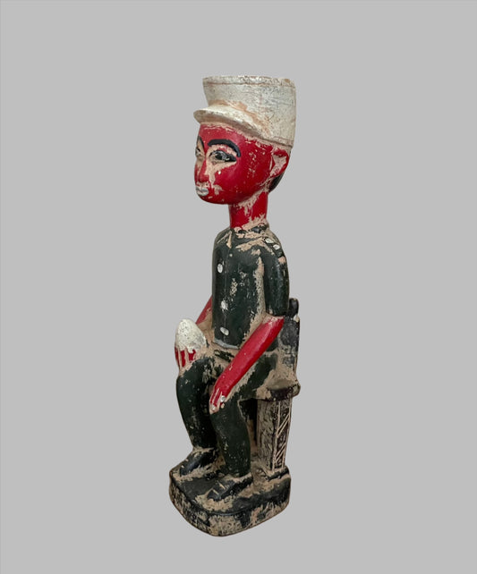 Military Officer Carved Wood Painted, Crafted Sculpture, African Artwork