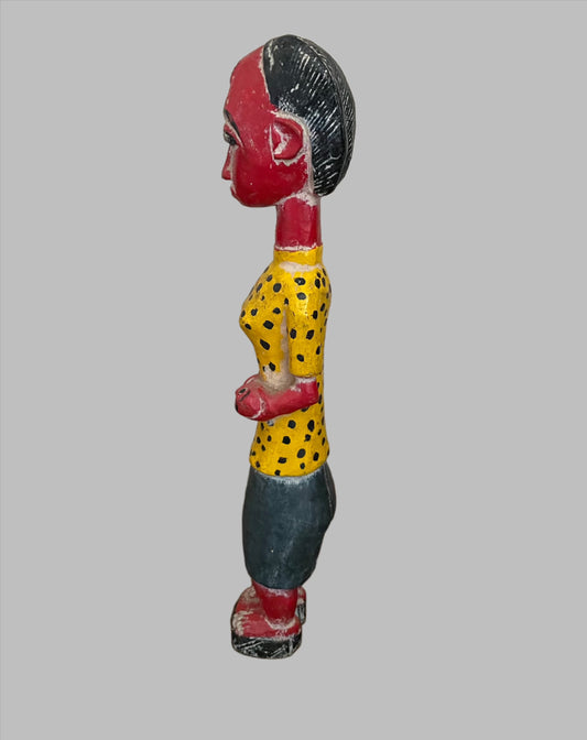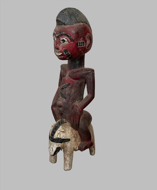 Hand Painted, Vintage African Baule Maternity Statue, Crafted Art, Carved Wood