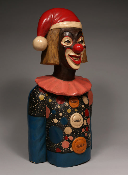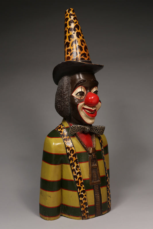 Decorative African Artwork, Clown Sculpture, Crafted Painted Wood