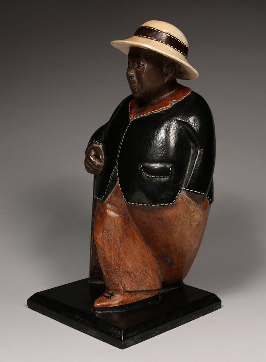 Gentleman Sculpture, Carved Painted Wood, African Decor