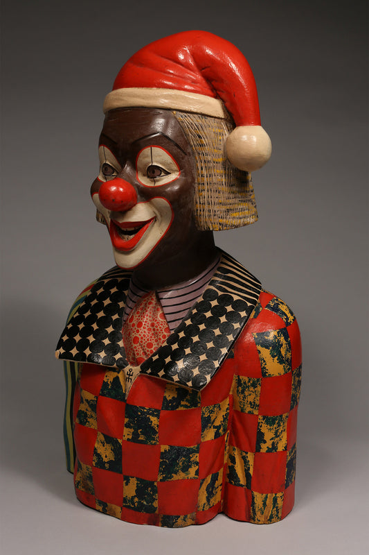Clown Santa Sculpture, Decorative, African Painted, Wood