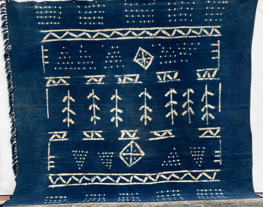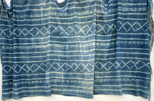 Decorative African Indigo Textile, Blue White Vintage Cotton Fabric