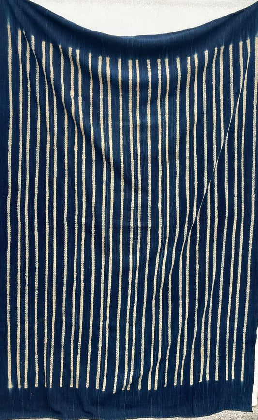 Vintage Striped Indigo African Cotton Fabric, Hand Dyed Decorative Textile
