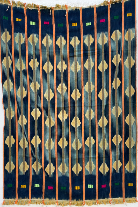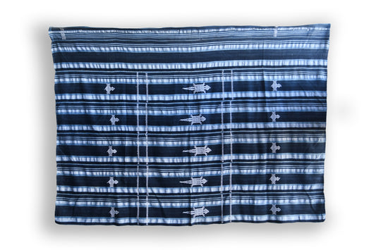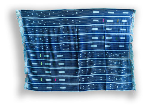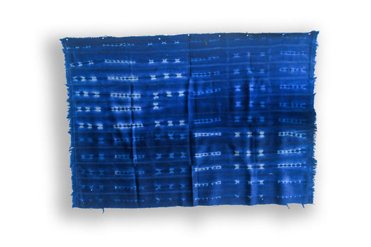 Dyed African Baule Indigo Cotton Cloth, Ikat Pattern, Home Decor