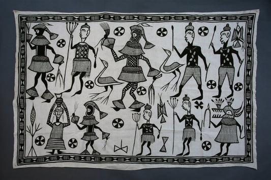 Vintage Cotton Fabric, Hand Painted African Senufo Mudcloth, Home decor Tapestry