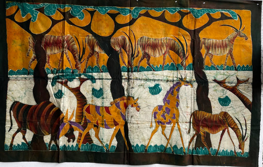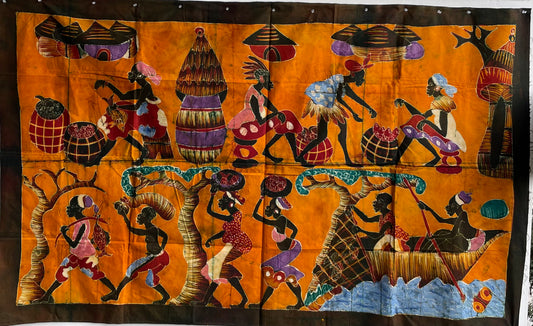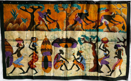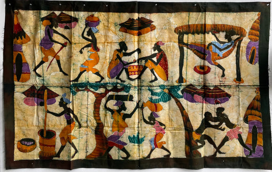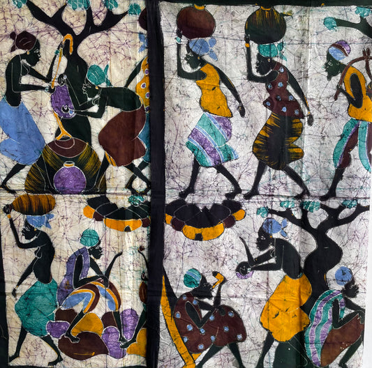 Hand Painted African Batik, Resist Dyed Cotton Textile, Wall Decor