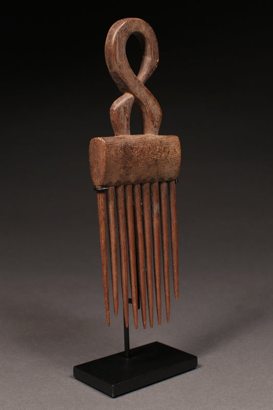Comb with Carved Superstructure, Carved Wood, Ashanti, Ghana, African Sculpture