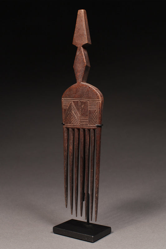 Comb with Geometric Incisions, Carved Wood, Ashanti, Asante, Ghana, African Artifact Sculpture