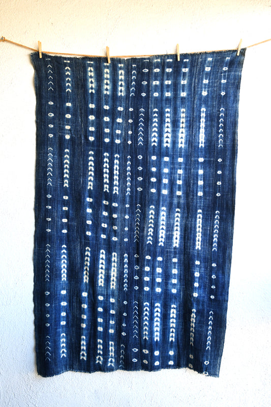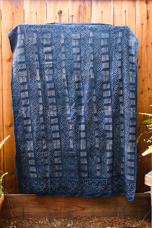Resist Dyed Indigo Fabric, Vintage Dogon Cotton Textile