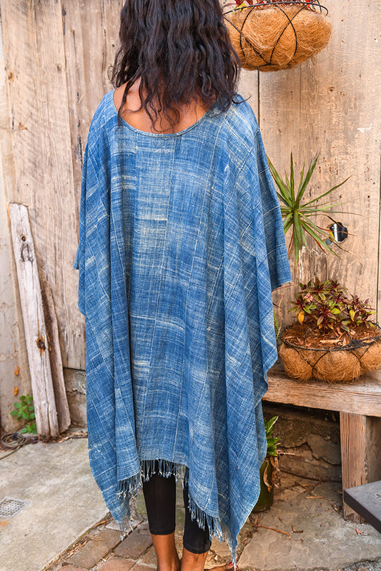 Faded Blue Indigo, Poncho African Textile
