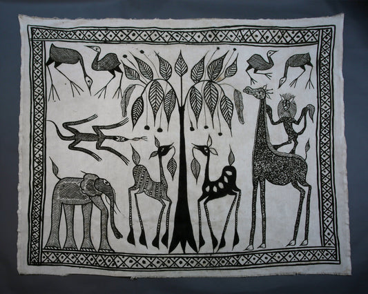 Hand Painted, Dyed Black White Mudcloth, Senufo Cotton Fabric Textile
