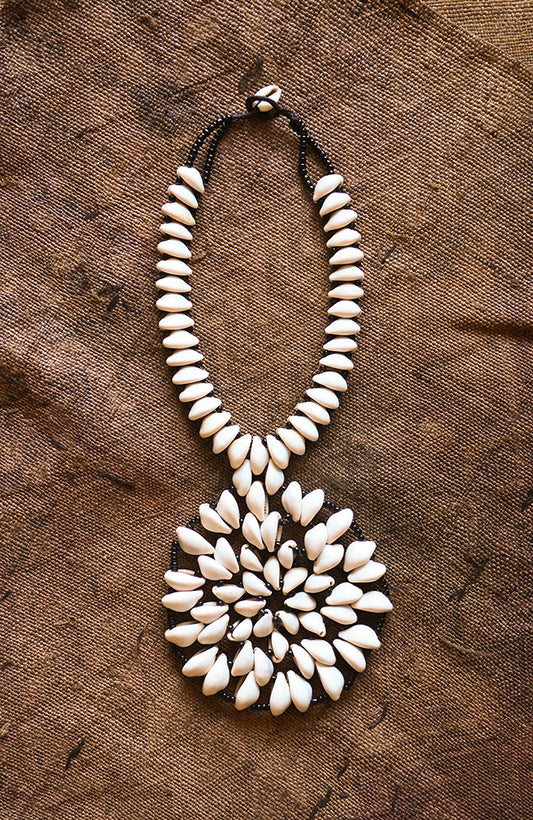 Statement African Jewelry Necklace, Cowrie Shell Beads Pendant