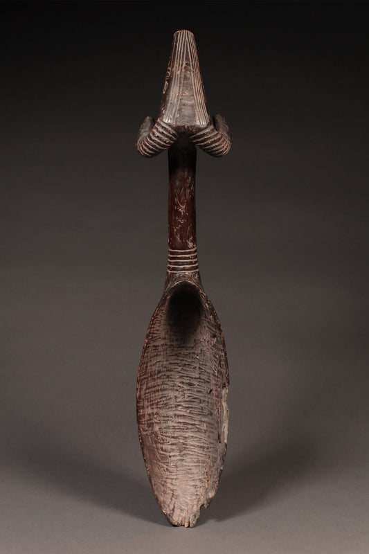 Ceremonial Ladle Spoon with Ram's Head, Carved African Wood, Dan Tribe