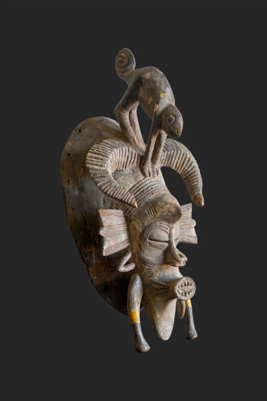 Ligbi Djimini Mask, Hand-Carved Wood, West African Art