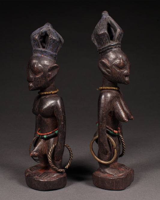 African Ibeji Twin Figures,Yoruba Tribe, Nigeria, Carved Wood