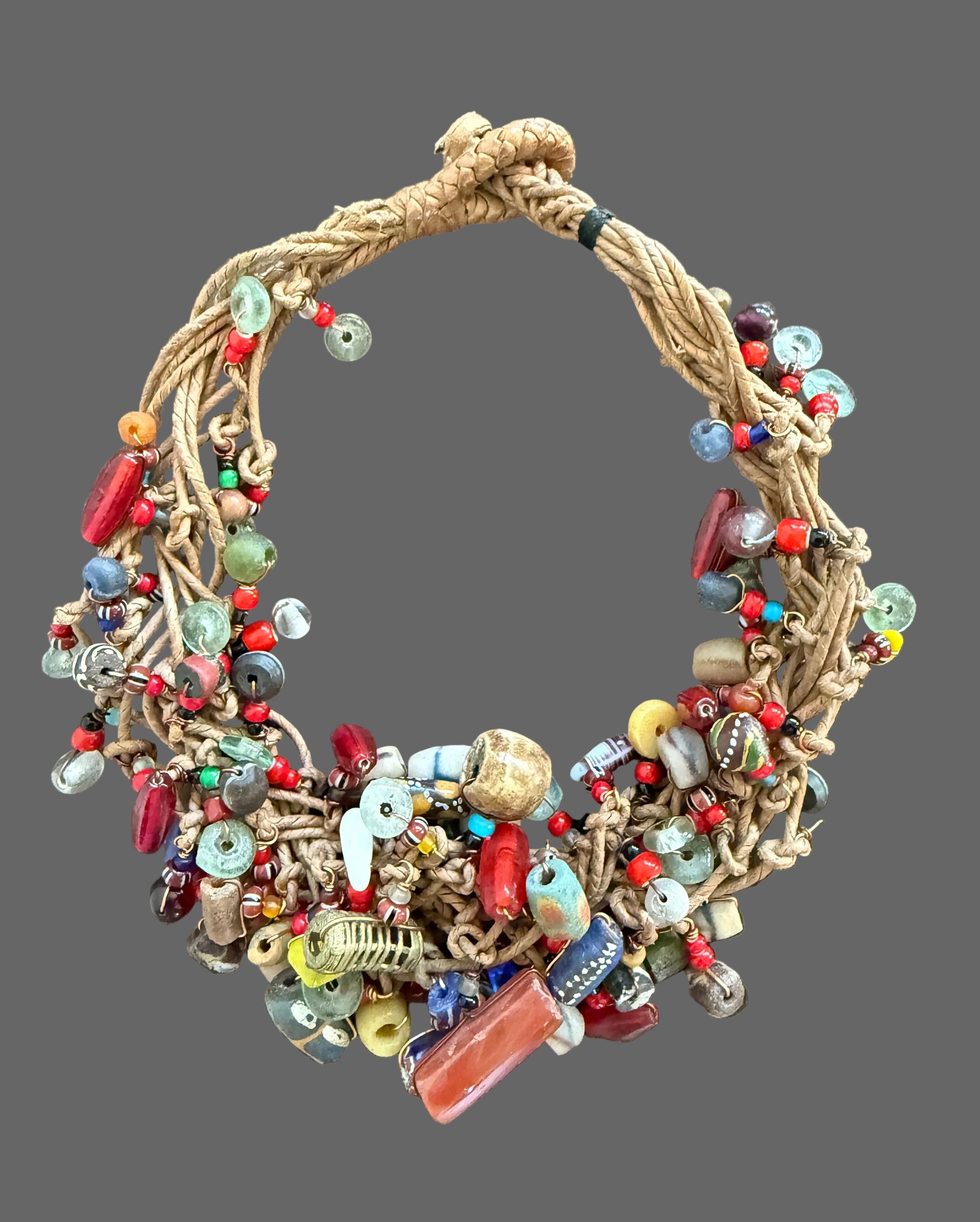 Trade Beads Leather Necklace, Women African Statement Jewelry