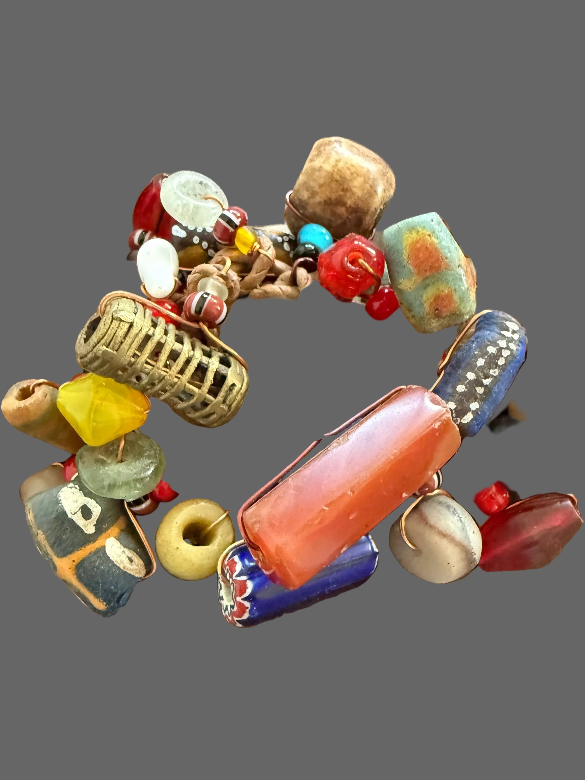 Trade beads have been treasured across African cultures for centuries, and this leather necklace honors that rich heritage. Handcrafted with authentic trade beads strung on supple leather, this statement piece combines traditional artistry with contemporary style. The bold design makes a powerful cultural statement while remaining versatile enough for everyday wear or special occasions. Perfect for those seeking meaningful jewelry that celebrates African craftsmanship and history.